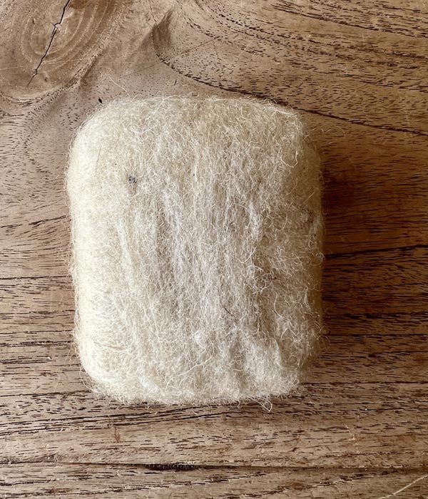 Ús: mulla el sabó fins que la llana s’impregni d’espuma, i frega’l directament a la pell del cos. Un cop moll, deixa’l sobre una sabonera i la llana expulsarà la humitat molt ràpid. Un cop gastat el sabó, pots utilitzar la llana com a esponja o impregnar-la amb olis essencials per fer d’ambientador.
