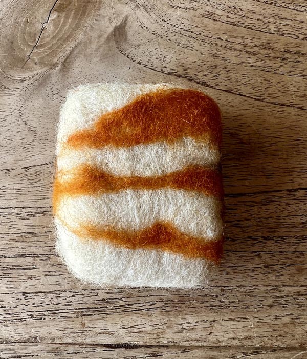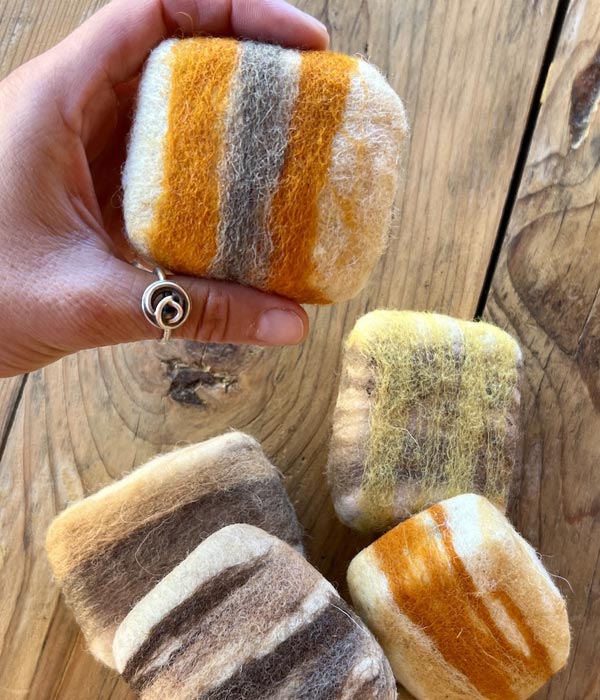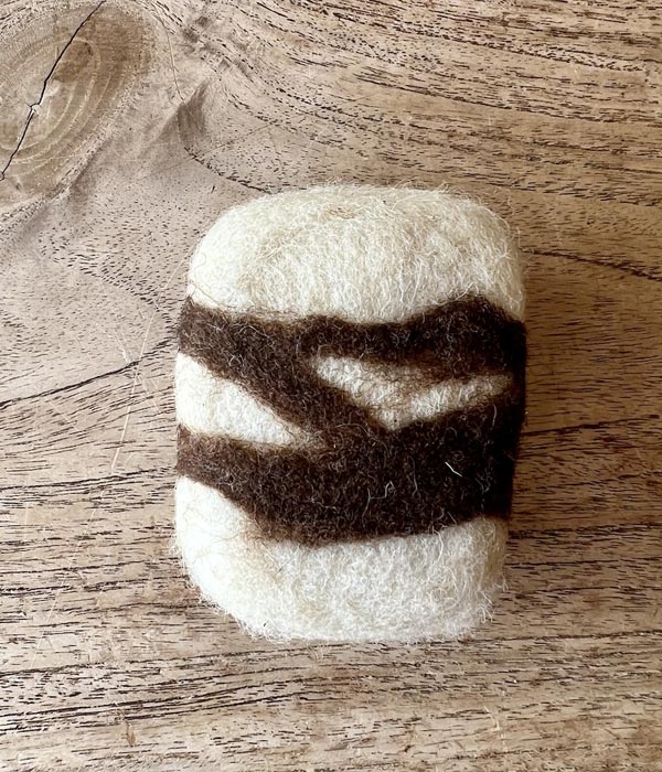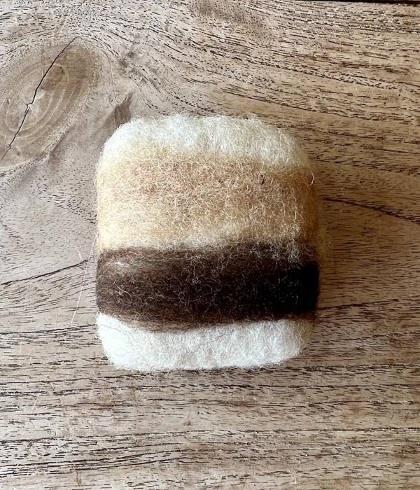 Un sabó natural recobert amb llana d’ovella ripollesa enfeltrada, obtinguda de manera respectuosa amb els animals i l’entorn, del ramat d’ovelles de Can Torra de Castellfollit del Boix. És un sabó hidratant, elaborat per SABsolids, per a tot tipus de pells, amb propietats relaxants, antisèptiques i antiinflamatòries. La part exterior és de 100% llana ripollesa de Catalunya, i allarga la durabilitat del sabó ja que el desgast és més lent. El pèl de la llana té el punt just per fer una exfoliació suau i es pot utilitzar cada dia pel cos.