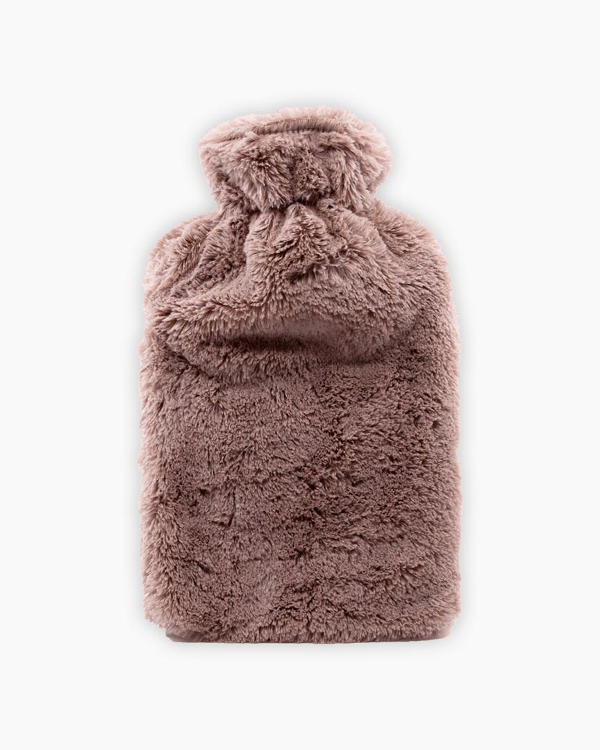 Bossa d'aigua calenta de 1,8 l. de cautxú amb una funda suau com de peluix. Disponibles en 4 colors diferents.