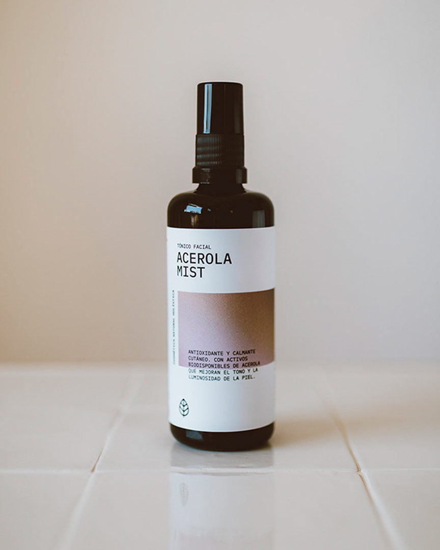 Tònic facial natural, molt antioxidant, equilibrant i calmant de la pell, amb ferments prebiòtics d'acerola, extracte d'hibisc i centella asiàtica (cica), millora la microcirculació, equilibra la microbiota, té un lleu efecte exfoliant que respecta el mantell lipídic, i deixa la pell il·luminada, relaxada i preparada per al tractament posterior.