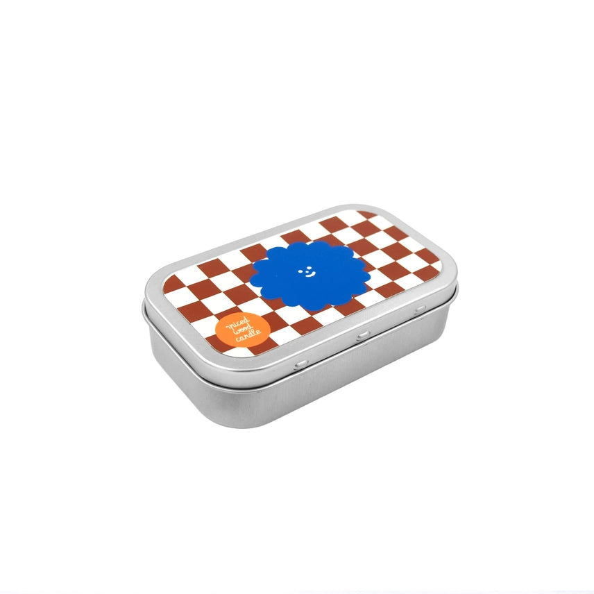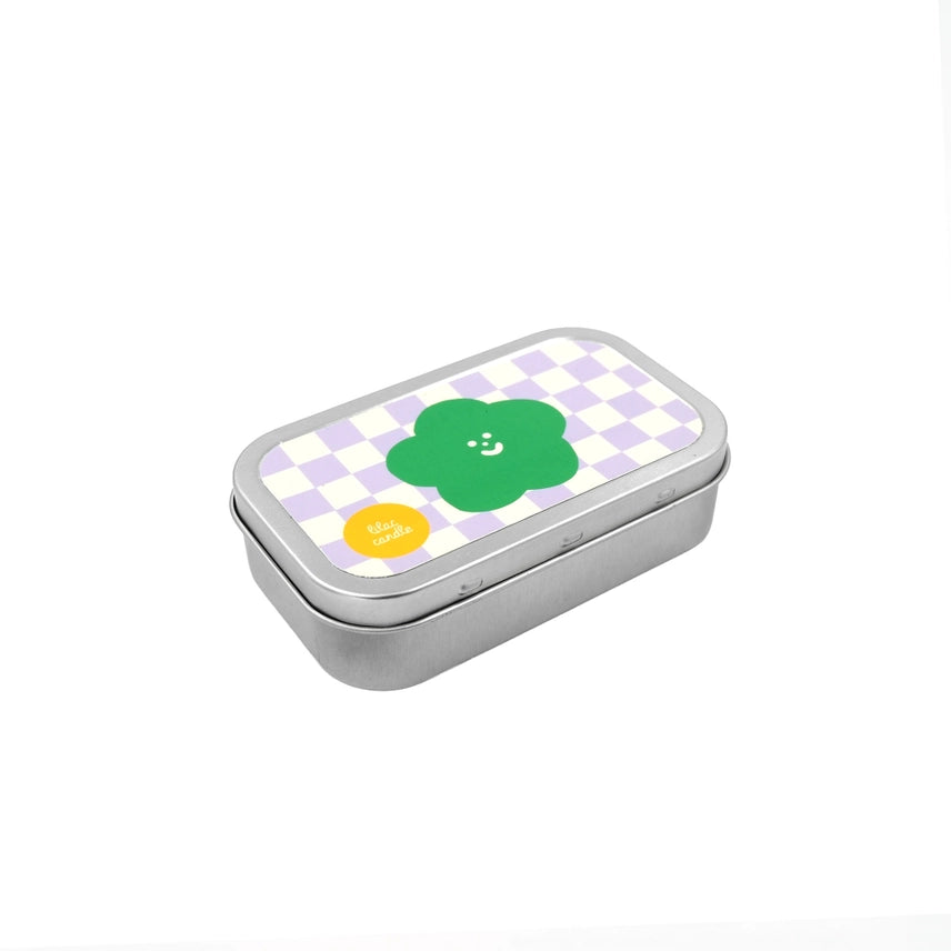 Espelma elaborada amb cera de soja, amb ble de cotó i olis essencials dins una capsa de llauna amb tapa. Disponible en sis aromes i dissenys diferents.