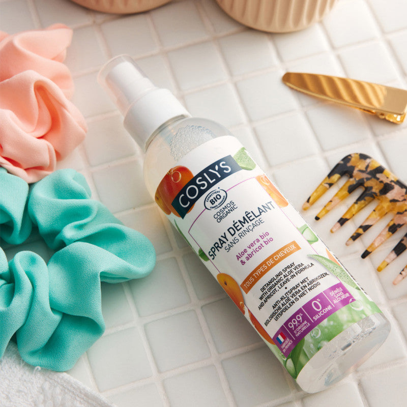 Este spray desenreda fácilmente el cabello sin dejarlo apelmazado. Es una bruma enriquecida con Aloe vera y Albaricoque orgánicos para toda la familia. Deja el pelo suave, flexible, brillante y delicadamente perfumado.