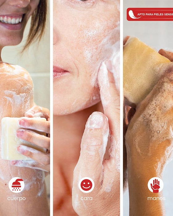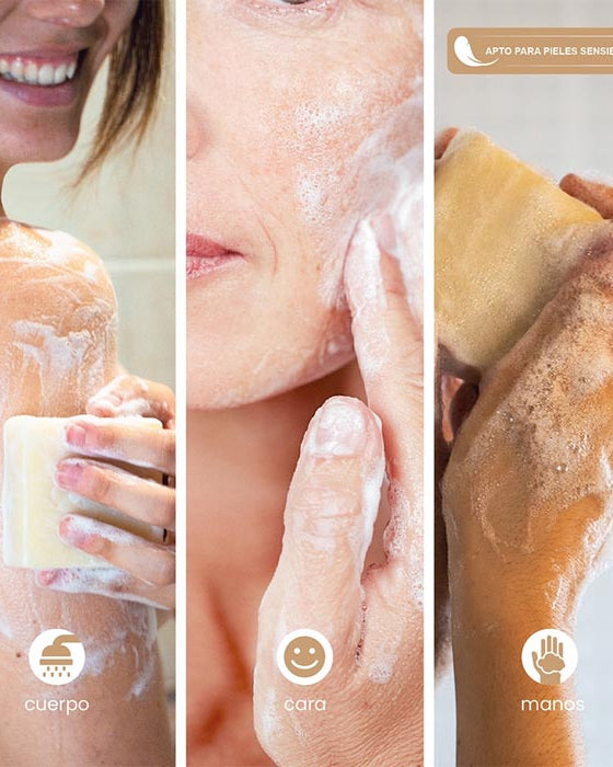 Además de geles de baño, también tenemos a la venta distintas variedades de jabones naturales, como el jabón natural de Caléndula, que proporciona una piel suave, hidratada y lisa, el jabón de alepo, a que se caracteriza por sus propiedades hidratantes, desinfectantes, cicatrizantes, regeneradoras y suavizantes o el Jabón de Carbón activo, que absorbe las impurezas de los poros y arrastra las toxinas que puedan acumularse en la superficie de la pielcon un suave aroma herbal y a Lavanda.